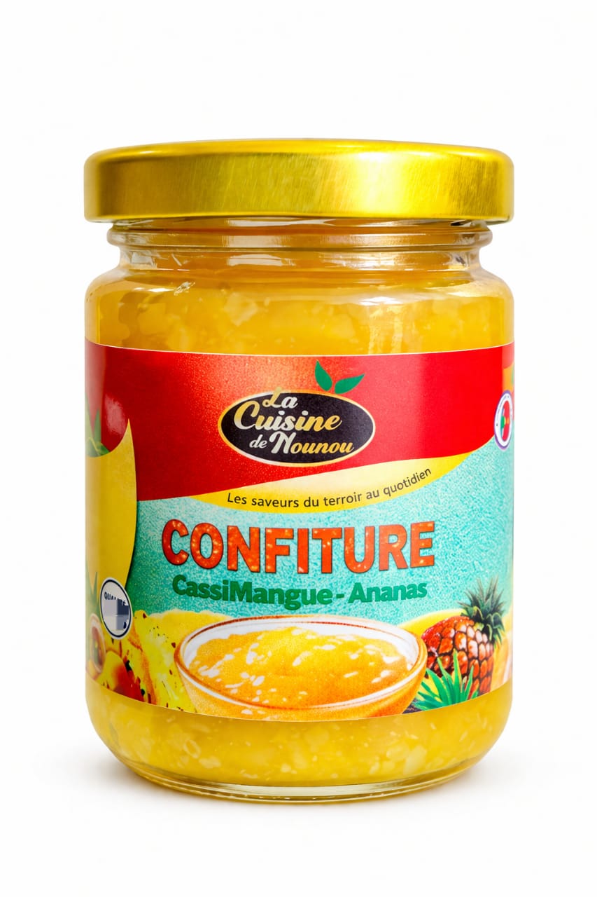 Une confiture gourmande qui marie la douceur du cassimango à la fraîcheur acidulée de l’ananas. Préparée à partir d’ingrédients naturels, elle offre une texture onctueuse et un goût exotique irrésistible, idéale pour vos petits-déjeuners et desserts.